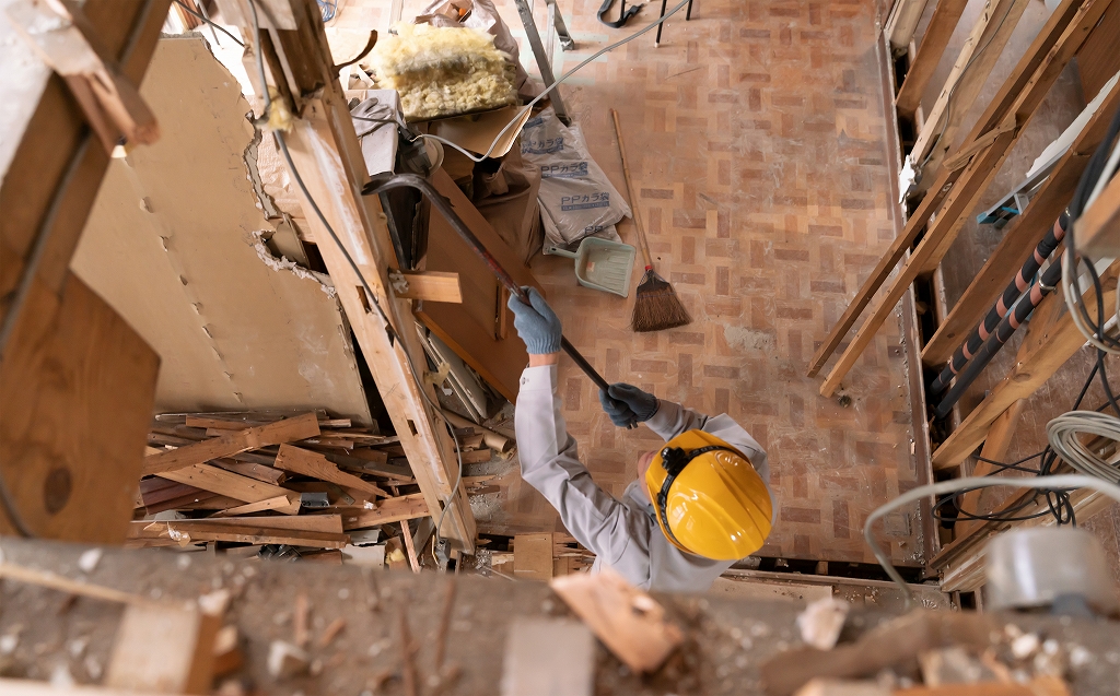 和新興業では、建物解体や内装解体、不用品回収、産業廃棄物処理など、解体工事全般に対応しています。一つ一つの現場に対して誠実に向き合い、周囲への配慮や安全管理を徹底しながら、丁寧な作業を積み重ねています。単に壊すだけで終わらせるのではなく、次につながる状態を意識した施工を行うことを大切にしています。ご依頼ごとに最適な方法を見極め、安心して任せていただける仕事を提供しています。以下で事業内容をご紹介いたします!